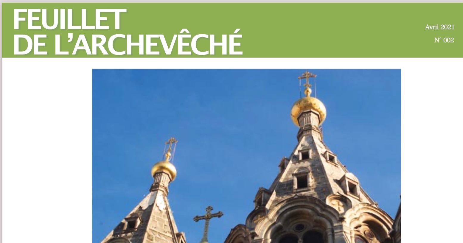 L’opuscolo dell’Arcidiocesi, di dieci numeri all’anno, ha lo scopo di assicurare un legame vivo tra le nostre parrocchie e le nostre diverse comunità. È disponibile in diverse lingue: francese, inglese, russo, italiano, olandese e tedesco.