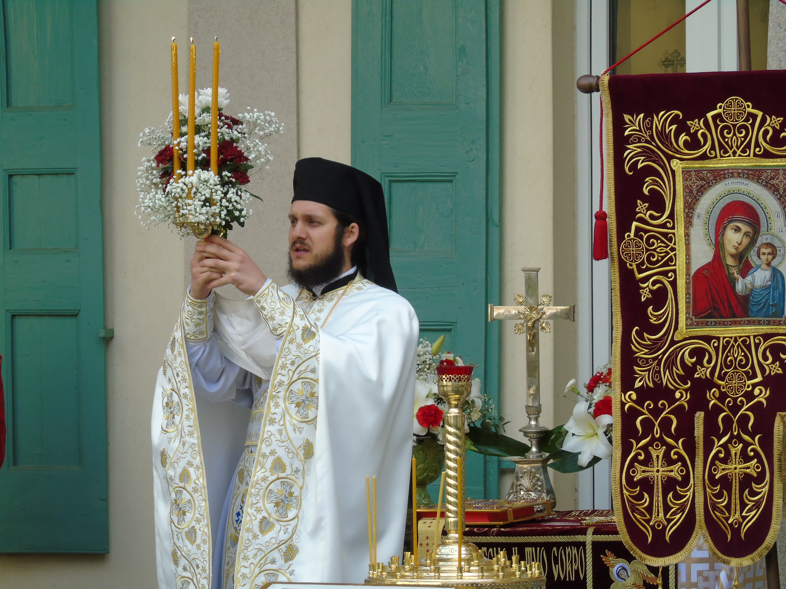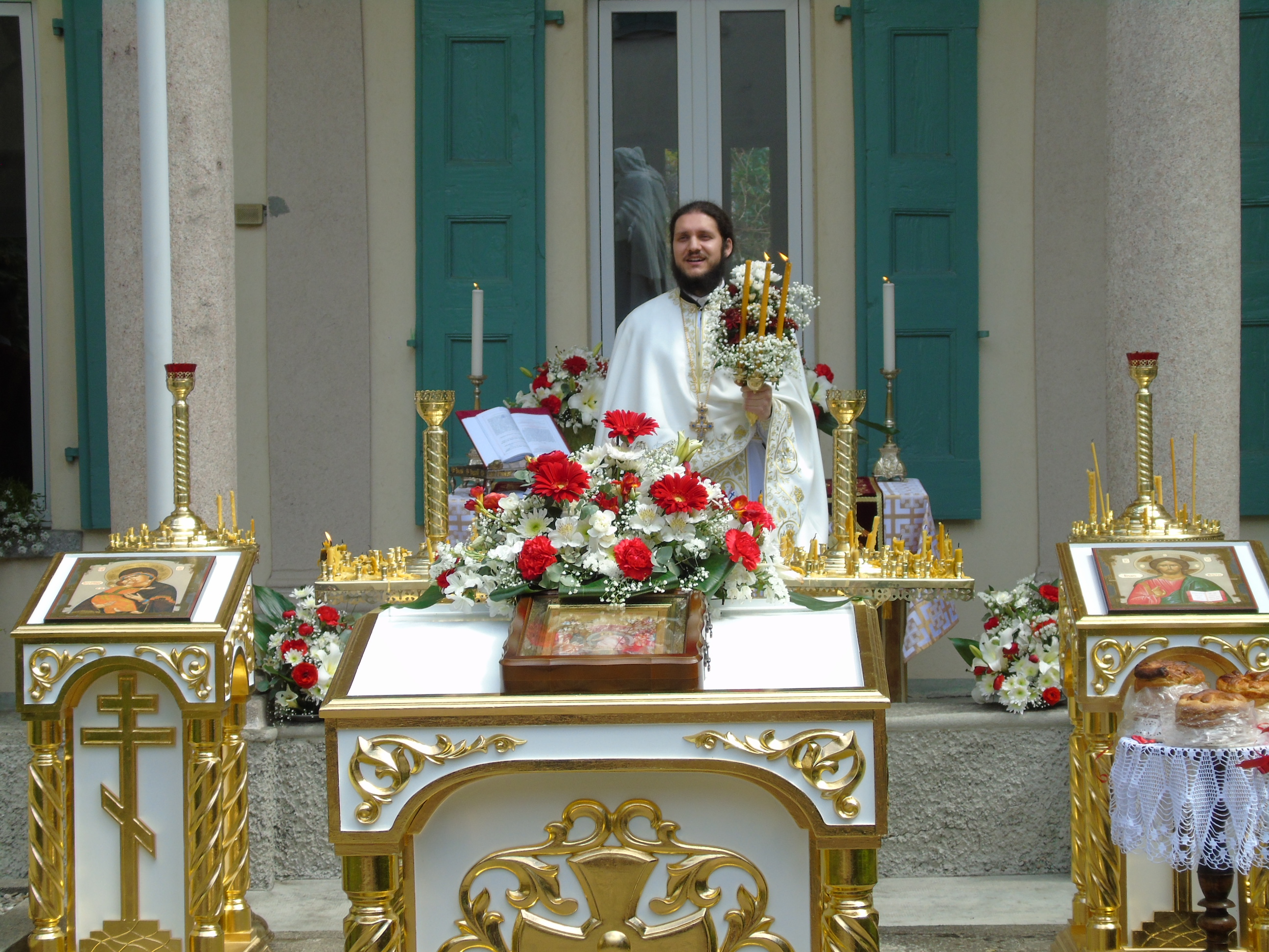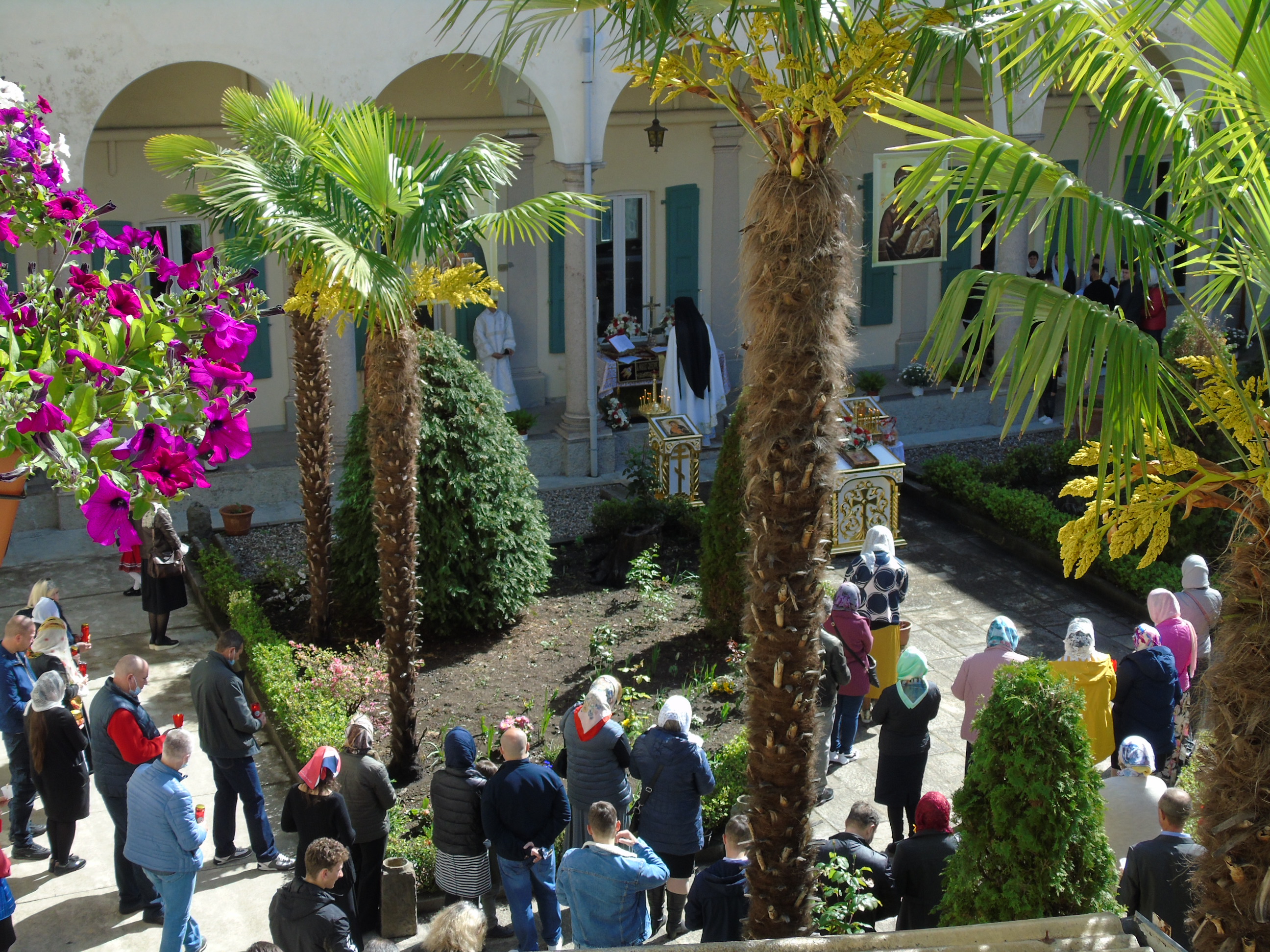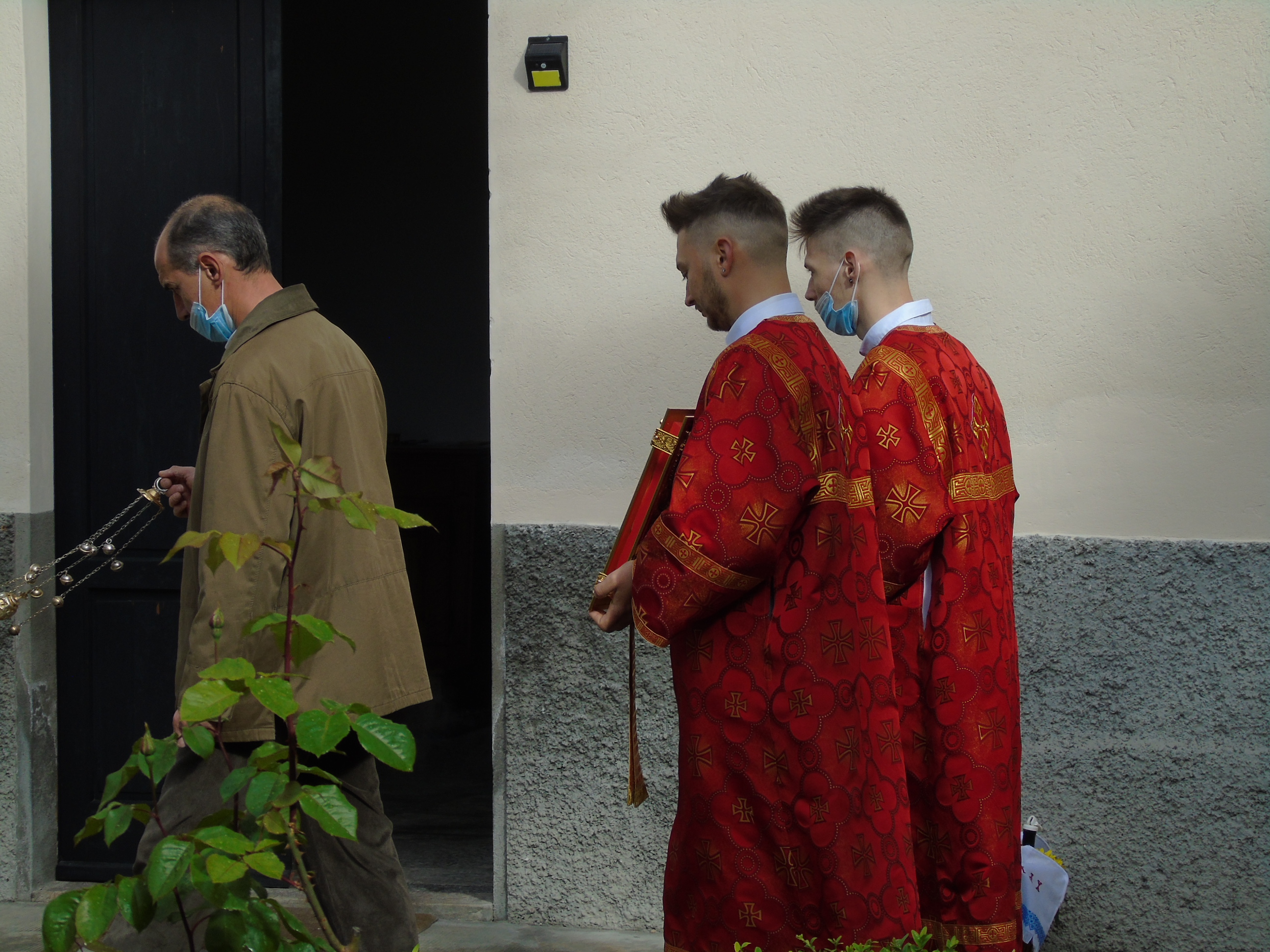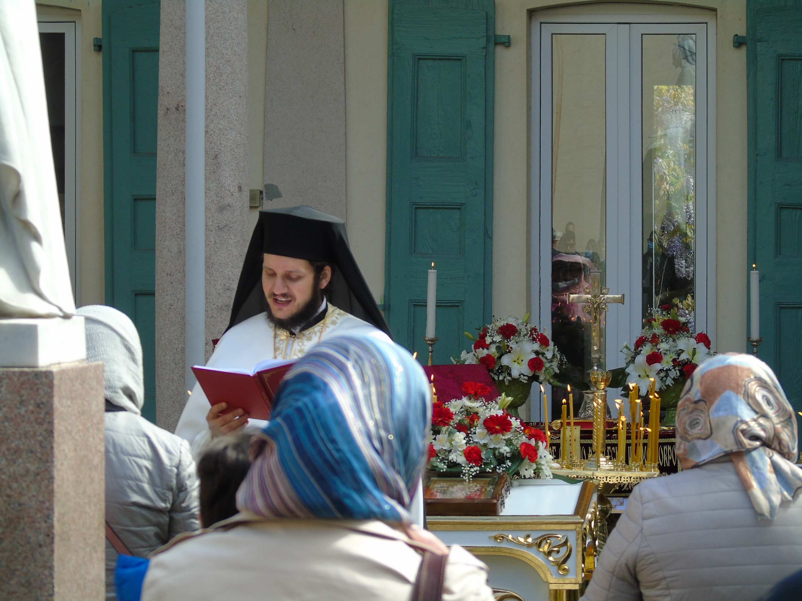 A casua della moltitudine dei fedeli che sono venuti per assistere alla Divina Liturgia è stata presa la decisione di celebrare l’Eucarestia nel chiostro.