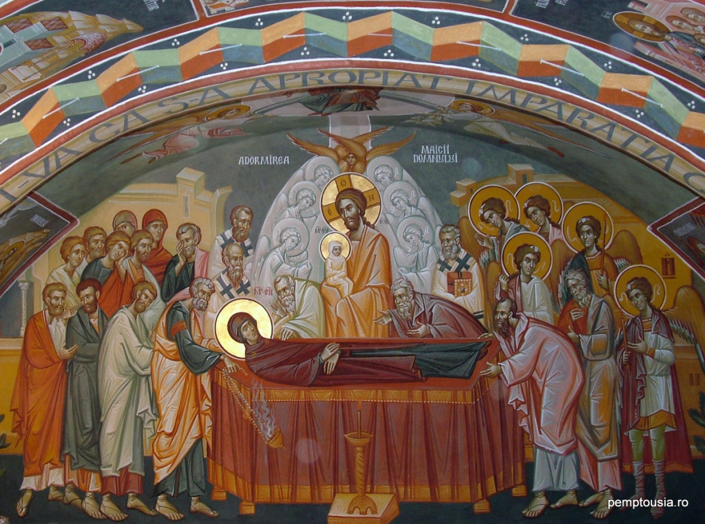 Oggi, la Scala spirituale e vivente, per la quale discese l’Altissimo per rendersi visibile sulla terra e conversare con gli uomini, servendosi della scala della morte, dalla terra si è trasferita ai cieli. Oggi, la tavola terrestre, che senza esperienza di nozze ha portato il pane celeste della vita, la brace della divinità, fu elevata dalla terra ai cieli; oggi, per la porta orientale di Dio si sono sopraelevate le porte del cielo. Oggi, dalla Gerusalemme terrestre la città vivente di Dio si è trasferita “alla Gerusalemme di lassù”; Colei che ha concepito come suo primogenito e unigenito il Primogenito di tutta la creazione, l’Unigenito del Padre, prende dimora nella “Chiesa dei primogeniti”; l’arca viva e spirituale del Signore viene sollevata fino al riposo di suo Figlio. Le porte del Paradiso si aprono e accolgono il campo che ha prodotto Dio, da cui germogliò l’albero della vita eterna che ha dissipato la disobbedienza di Eva e la pena di morte comminata ad Adamo. Questi è Cristo, la causa della vita dell’universo, che riceve la grotta scavata, la montagna non tagliata, dalla quale si staccò, senza opera di mani, la pietra che riempì la terra. Il letto nuziale della divina Incarnazione del Verbo si è adagiato nella tomba gloriosissima come in stanza nuziale e sale fino al nuziale appartamento celeste per regnare splendidamente con il suo Figlio e suo Dio, e lascia la sua tomba come letto nuziale a quelli che restano sulla terra.