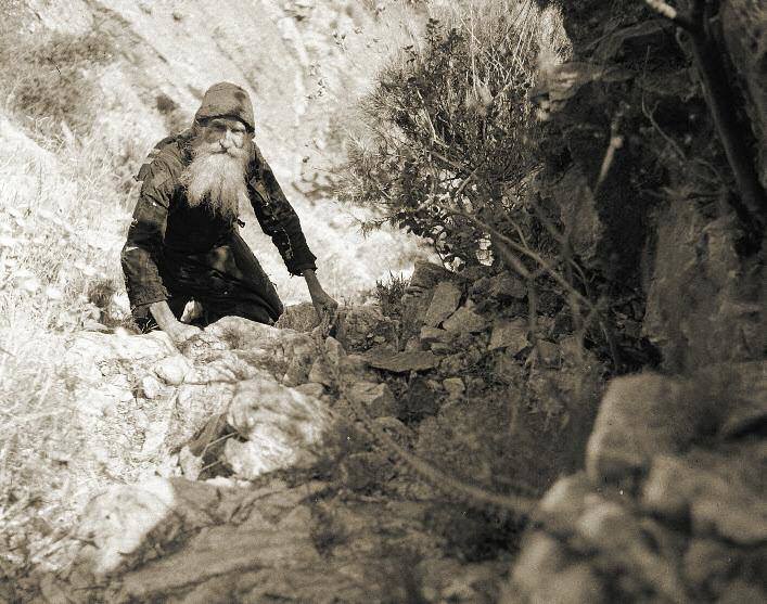 Con grande fatica si alzò, e andarono. Quando i padri raggiunsero un luogo dove tra le rocce c’era un po’ di terra, lo starec Filarete si sdraiò per terra.