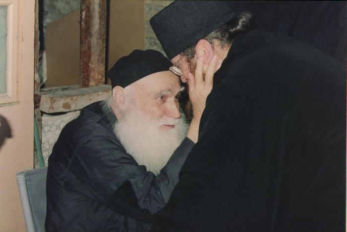L’igumeno del Monastero di Grigoriu, padre Giorgio, lo sentiva come un suo parente, perché lo staretz era stato ospitato nella sua casa paterna di Atene. Ma anche Anastasio, il benedetto padre dell’igumeno, che in gioventù aveva lavorato a Tebe, aveva vissuto in affitto nella casa dello staretz. L’igumeno Giorgio mostrò molta grandezza d’animo negli ultimi anni, quando lo staretz fu colpito dalla malattia. Molte volte mandò da lui i suoi discepoli, gli ieromonaci Demetrio e Luca, i medici del monastero. Ogni volta questi rimasero per diversi giorni accanto allo staretz. Ricevettero moltissime benedizioni; lo staretz li benediceva con tutto il cuore. Tutti li amava e da tutti era amato. I giovani prendevano forza dalle sue parole piene di vivacità e dall’esempio della sua vita. I vecchi ne conoscevano la natura tranquilla e lo onoravano. A tutti donava tutto il suo cuore, li giovava spiritualmente, ma conservava con molta attenzione la propria anima illesa.